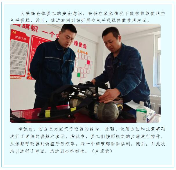 儲(chǔ)運(yùn)車間組織開展空氣呼吸器佩戴使用考試