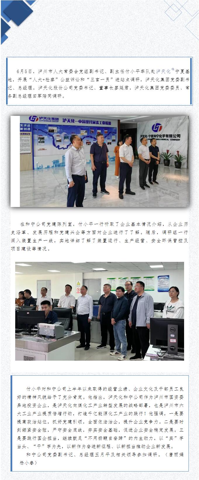 瀘州市人大常委會副主任付小平率隊(duì)調(diào)研瀘天化寧夏基地