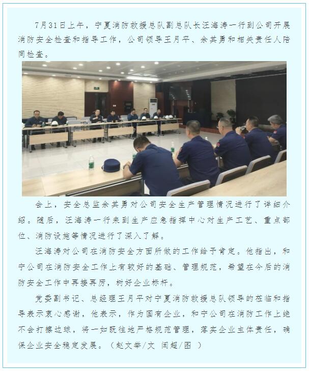 寧夏消防救援總隊(duì)到和寧公司檢查指導(dǎo)