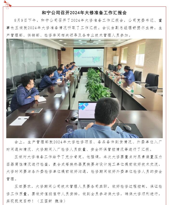 和寧公司召開2024年大修準(zhǔn)備工作匯報(bào)會(huì)