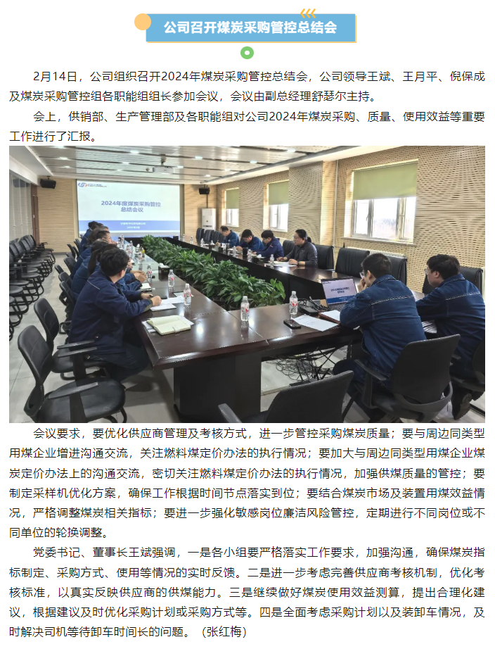 公司組織召開(kāi)2024年煤炭采購(gòu)管控總結(jié)會(huì)