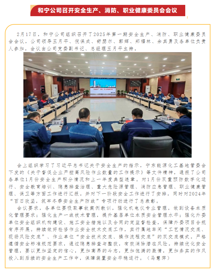 和寧公司召開安全生產(chǎn)、消防、職業(yè)健康委員會會議