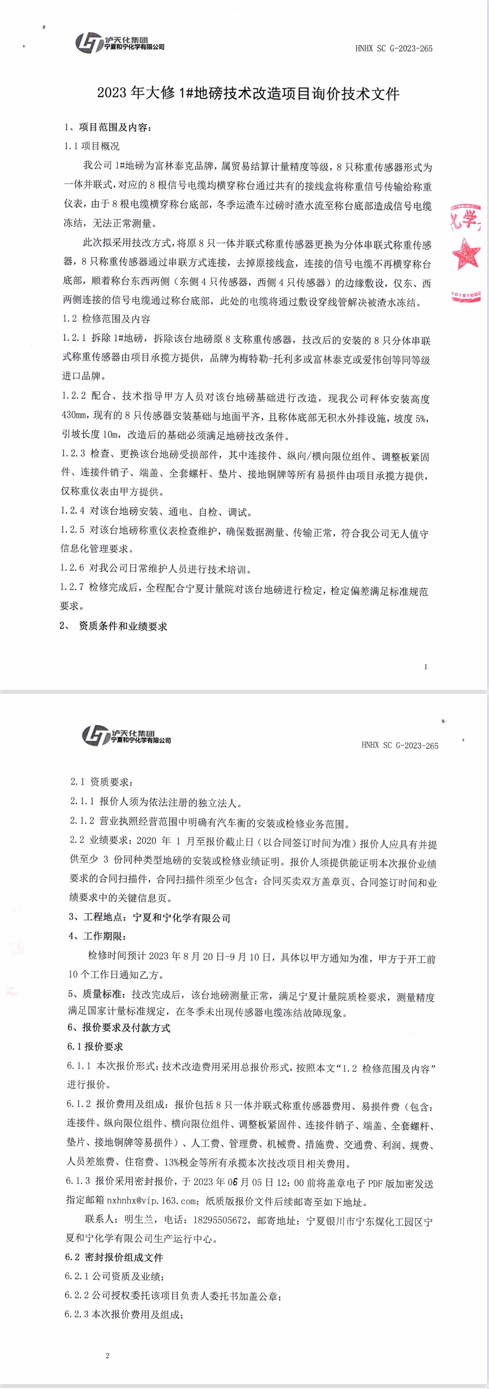 2023年大修1#地磅技術(shù)改造項(xiàng)目詢價(jià)技術(shù)文件