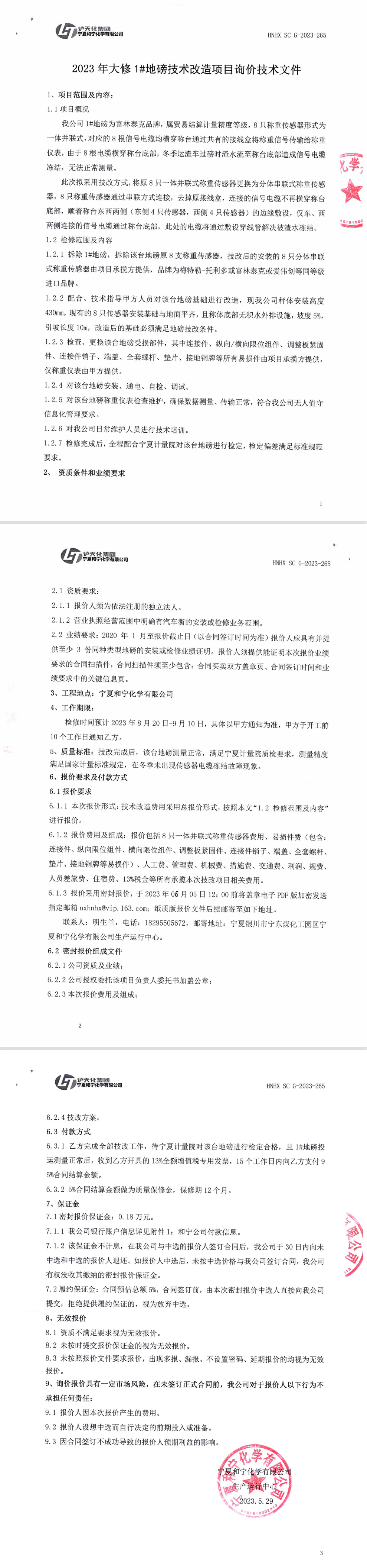 2023年大修1#地磅技術(shù)改造項目詢價技術(shù)文件