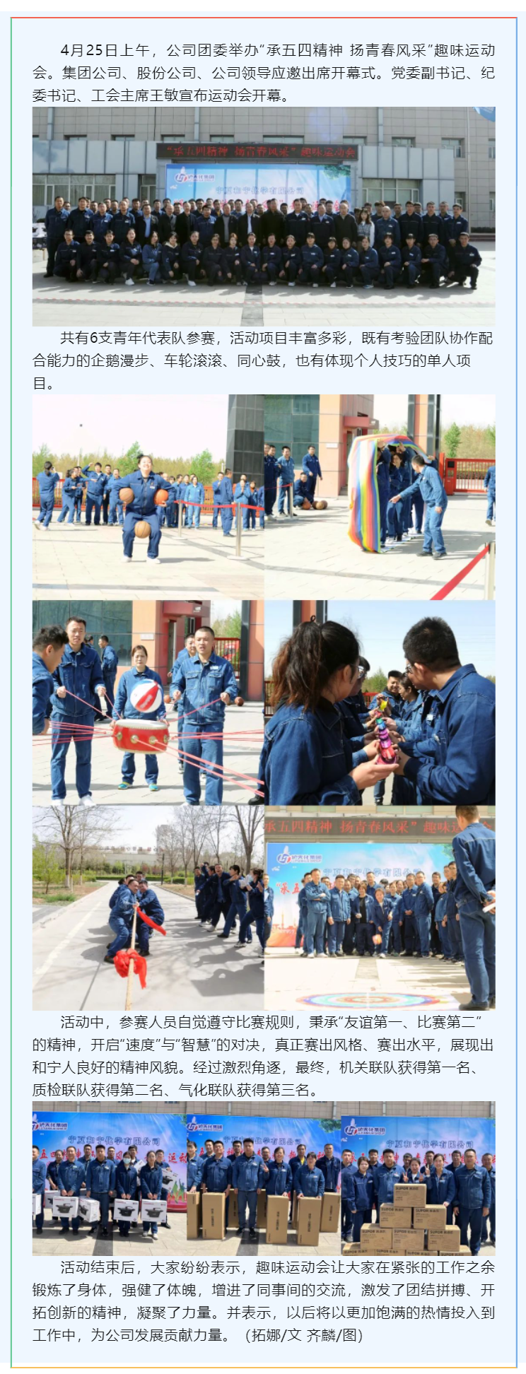 公司團(tuán)委舉辦“承五四精神 揚(yáng)青春風(fēng)采”趣味運(yùn)動(dòng)會(huì)