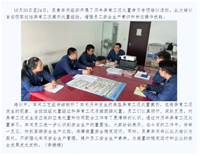 尿素車間組織開展歷年異常工況處置學(xué)習(xí)專項(xiàng)培訓(xùn)