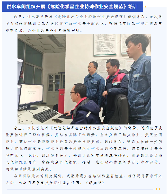 供水車間組織開展《危險(xiǎn)化學(xué)品企業(yè)特殊作業(yè)安全規(guī)范》培訓(xùn)