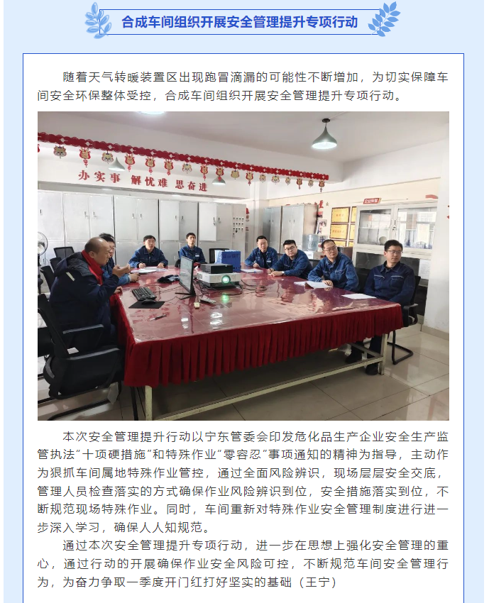 合成車(chē)間組織開(kāi)展安全管理提升專(zhuān)項(xiàng)行動(dòng)