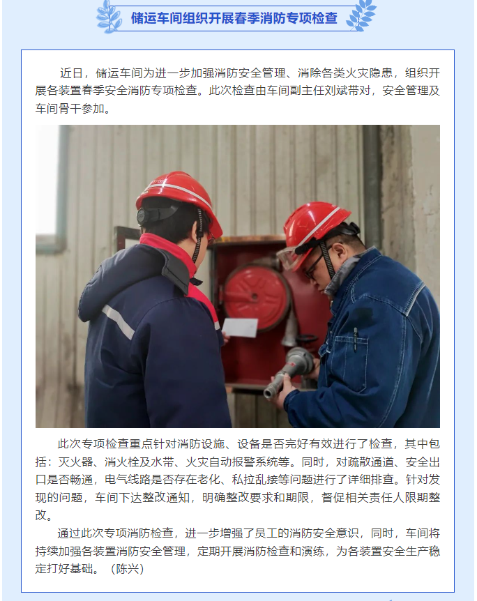 儲運(yùn)車間組織開展春季消防專項(xiàng)檢查