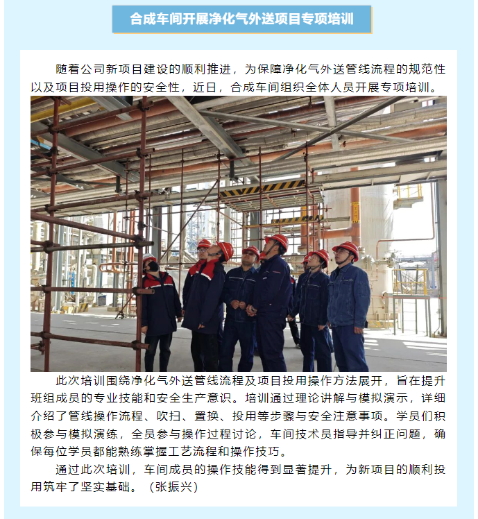 合成車間開展凈化氣外送項(xiàng)目專項(xiàng)培訓(xùn)
