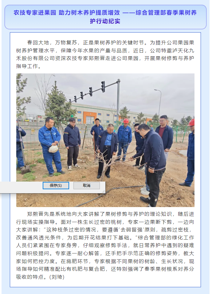 農(nóng)技專家進(jìn)果園 助力樹木養(yǎng)護(hù)提質(zhì)增效 ——綜合管理部春季果樹養(yǎng)護(hù)行動(dòng)紀(jì)實(shí)