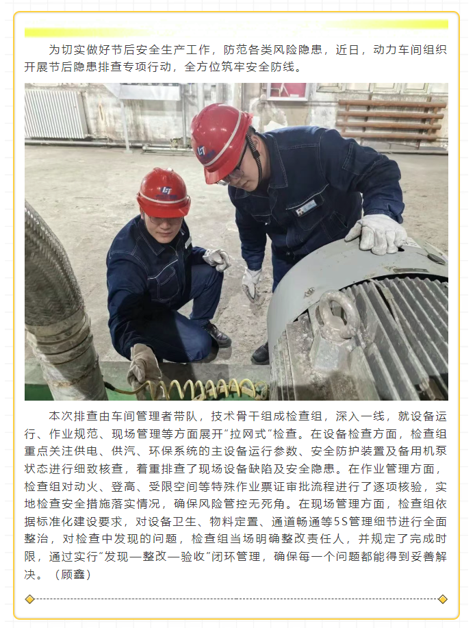 動(dòng)力車間開展節(jié)后隱患排查 擰緊安全生產(chǎn)“責(zé)任閥”