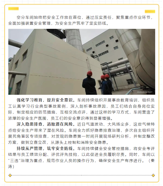 空分車間多措并舉筑牢裝置安全生產(chǎn)防線