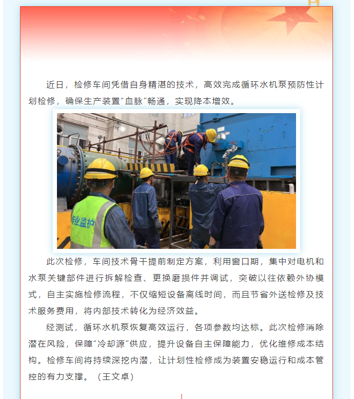 檢修車間巧施內(nèi)功,循環(huán)水機泵煥新穩(wěn)運行