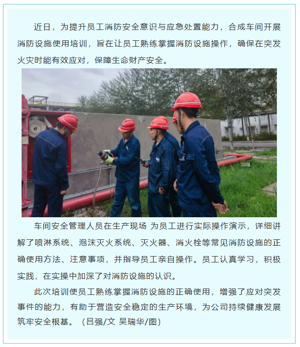 合成車間開展消防設(shè)施實(shí)踐培訓(xùn)