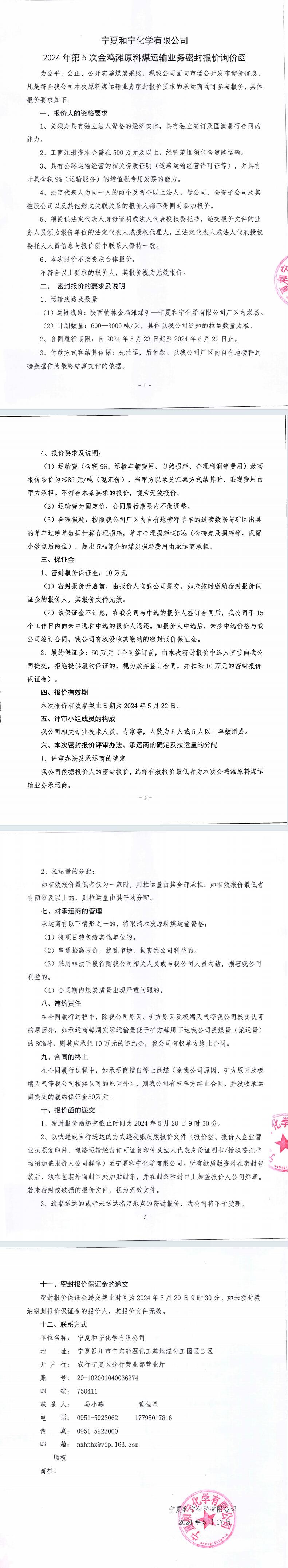 寧夏和寧化學(xué)有限公司2024年第5次金雞灘原料煤運輸業(yè)務(wù)密封報價詢價函附件