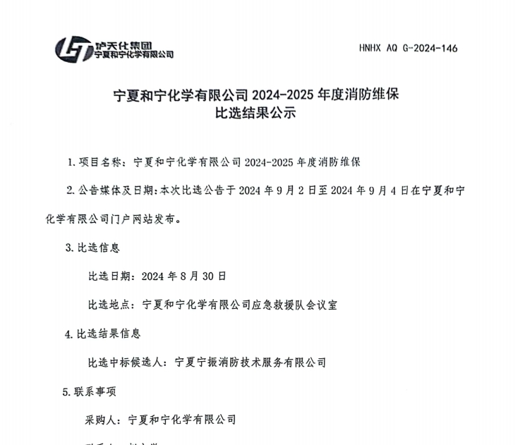 寧夏和寧化學(xué)有限公司 2024-2025年度消防維保比選結(jié)果公示.pdf [全文]
