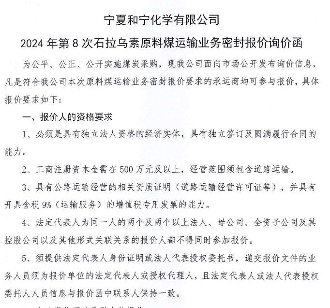 寧夏和寧化學(xué)有限公司2024年第8次石拉烏素原料煤運(yùn)輸業(yè)務(wù)密封報(bào)價(jià)詢(xún)價(jià)函.pdf [全文]
