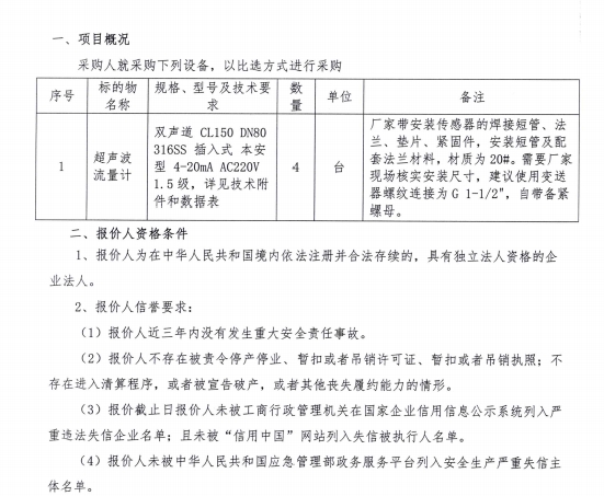 寧夏和寧化學(xué)有限公司氣化火炬新增超聲波流量計采購比選文件(二次).pdf [全文]