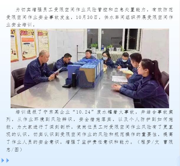 供水車間開展受限空間作業(yè)安全培訓