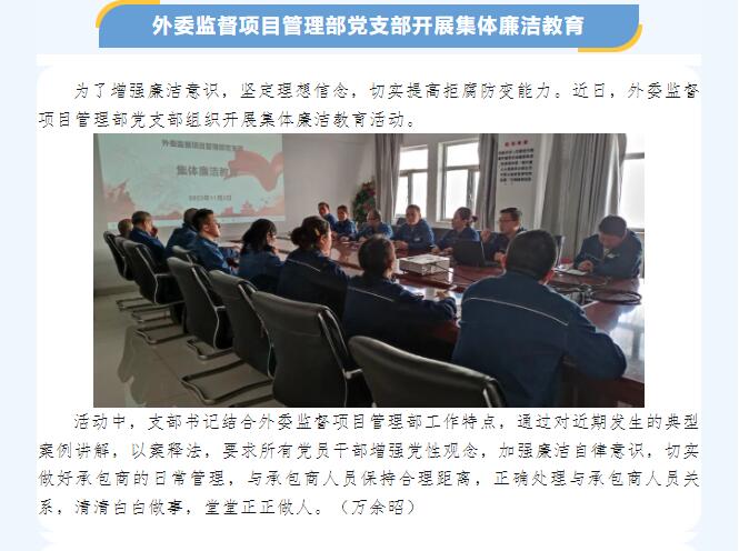 外委監(jiān)督項(xiàng)目管理部黨支部開展集體廉潔教育