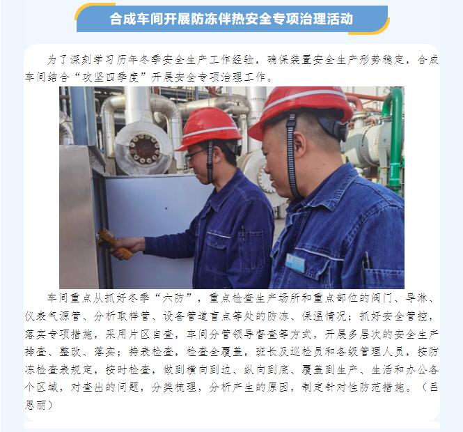 合成車間開展防凍伴熱安全專項(xiàng)治理活動(dòng)