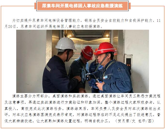 尿素車(chē)間開(kāi)展電梯困人事故應(yīng)急救援演練