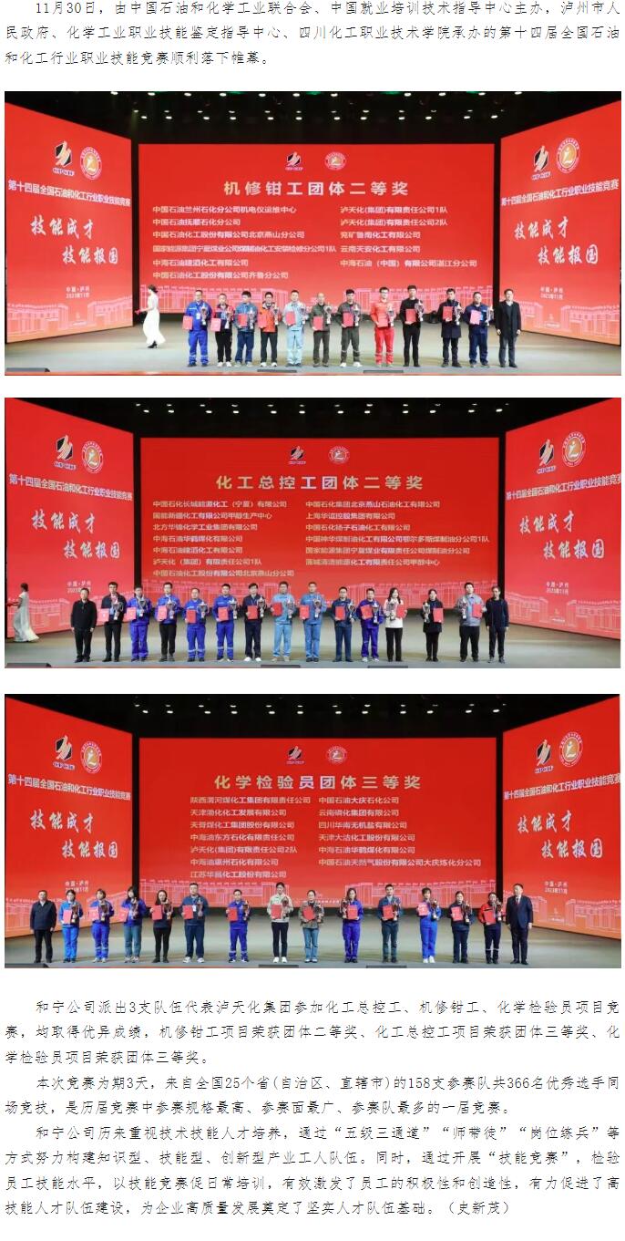 瀘天化和寧公司三支代表隊(duì)在全國(guó)石油和化工行業(yè)職業(yè)技能競(jìng)賽中獲佳績(jī)