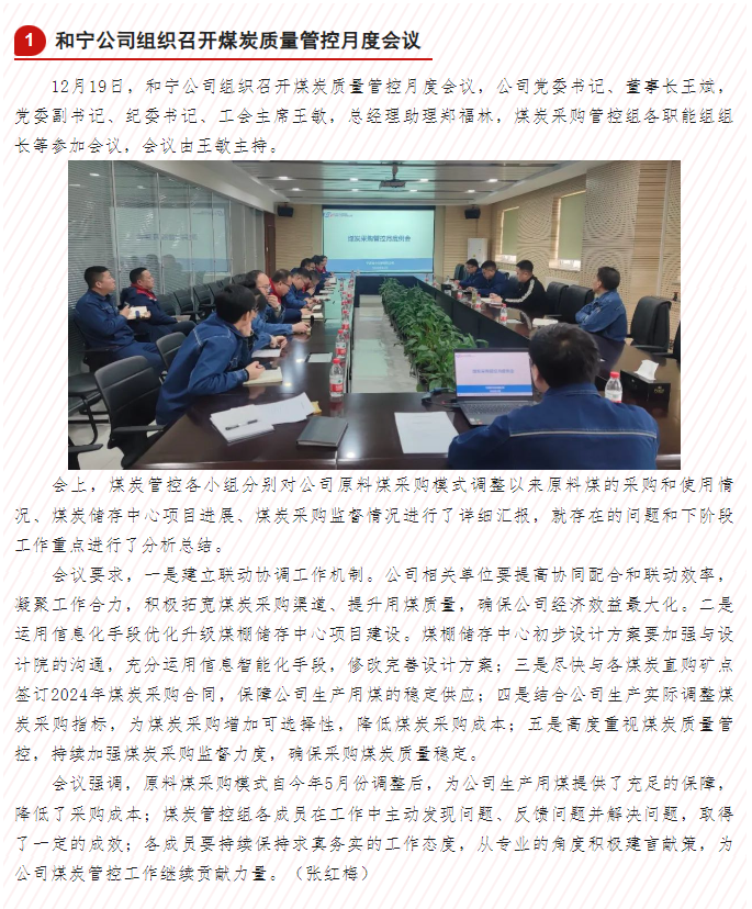 和寧公司組織召開煤炭質(zhì)量管控月度會(huì)議