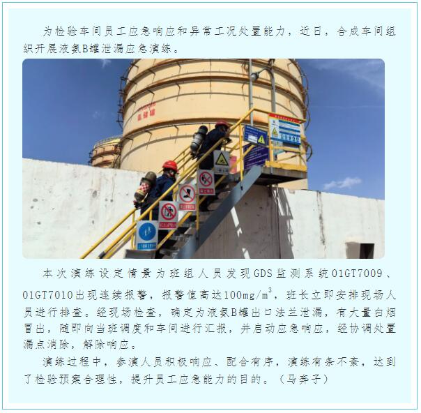 合成車間開(kāi)展液氨B罐泄漏應(yīng)急演練