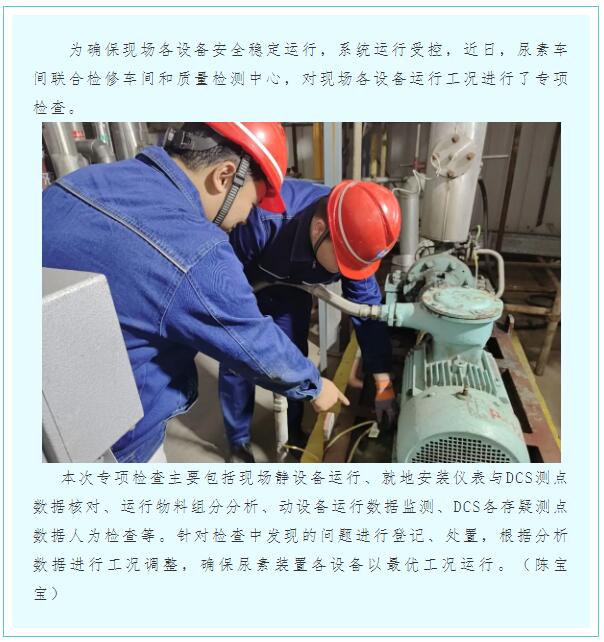 尿素車間開展現(xiàn)場(chǎng)設(shè)備運(yùn)行工況專項(xiàng)檢查