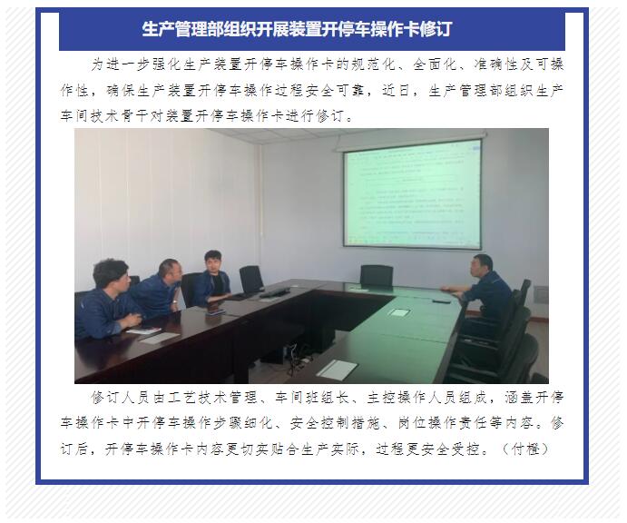 生產(chǎn)管理部組織開展裝置開停車操作卡修訂