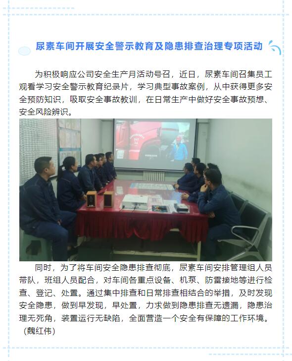 尿素車間開展安全警示教育及隱患排查治理專項(xiàng)活動
