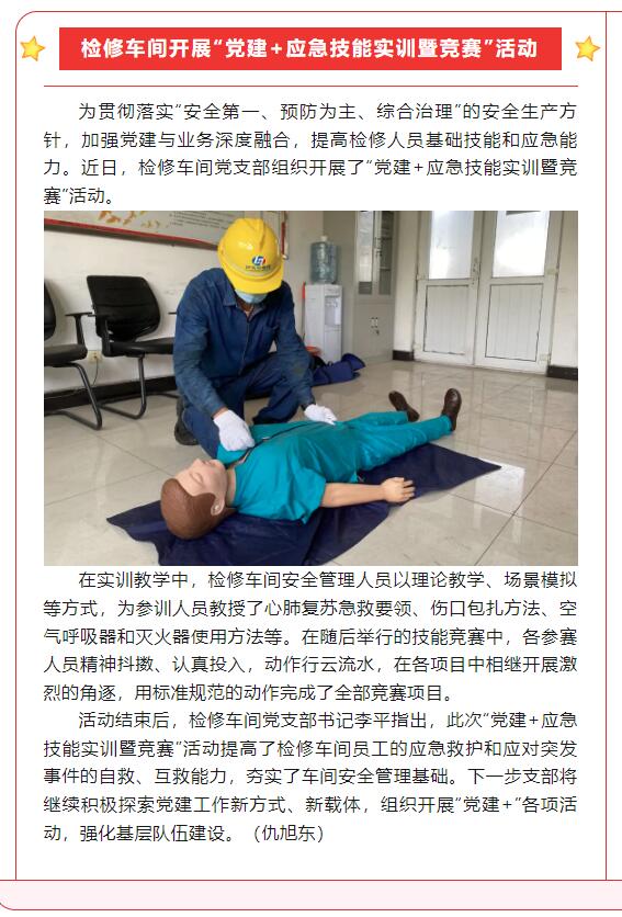 檢修車間開展“黨建+應(yīng)急技能實(shí)訓(xùn)暨競(jìng)賽”活動(dòng)