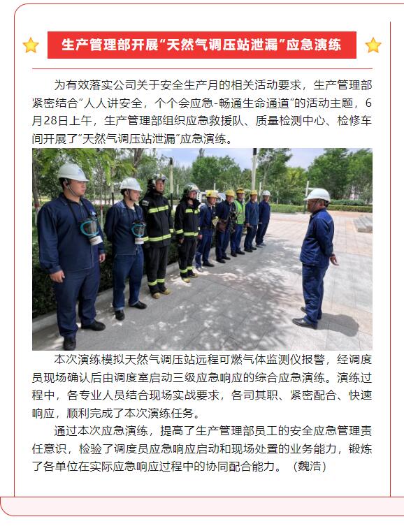 生產(chǎn)管理部開(kāi)展“天然氣調(diào)壓站泄漏”應(yīng)急演練