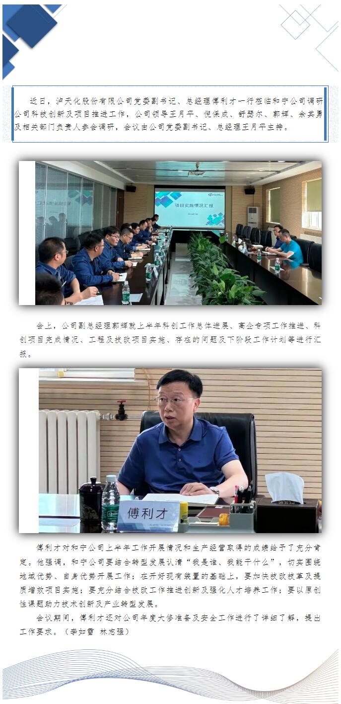 傅利才一行蒞臨和寧公司調(diào)研科技創(chuàng)新及項目推進工作