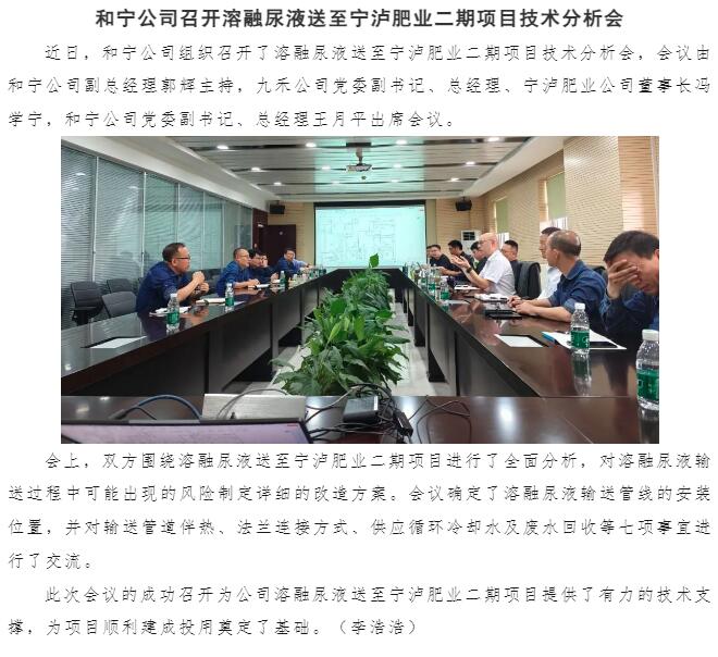 和寧公司召開(kāi)溶融尿液送至寧瀘肥業(yè)二期項(xiàng)目技術(shù)分析會(huì)