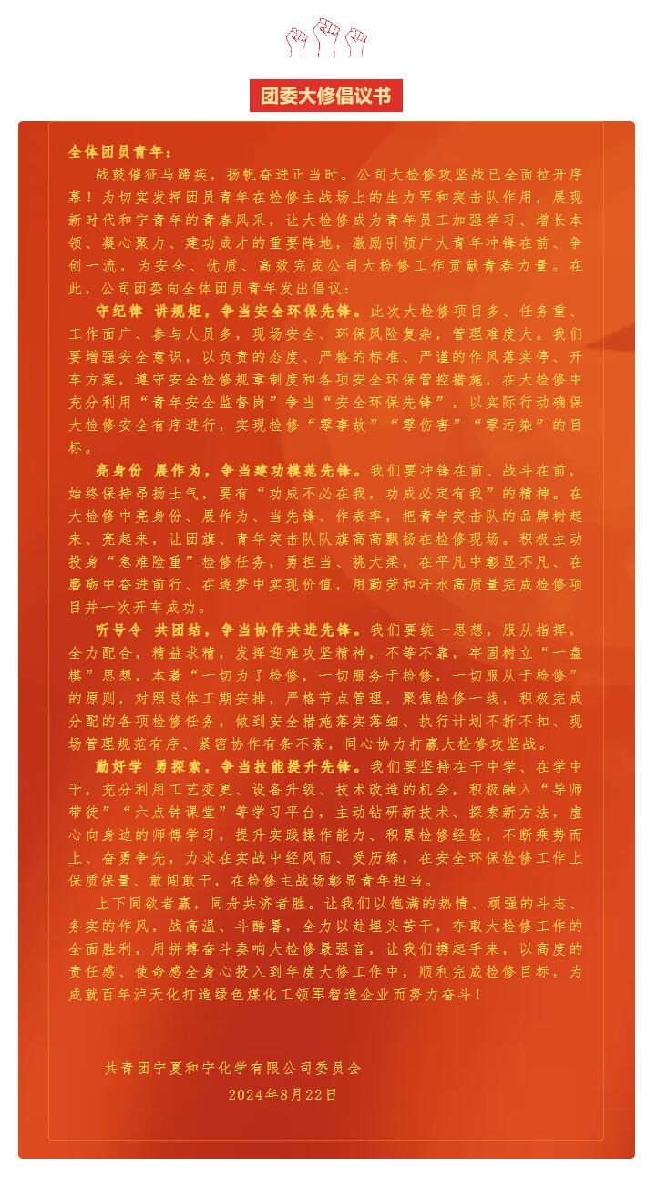 青春助力 檢修同行——和寧公司團(tuán)委大修倡議書