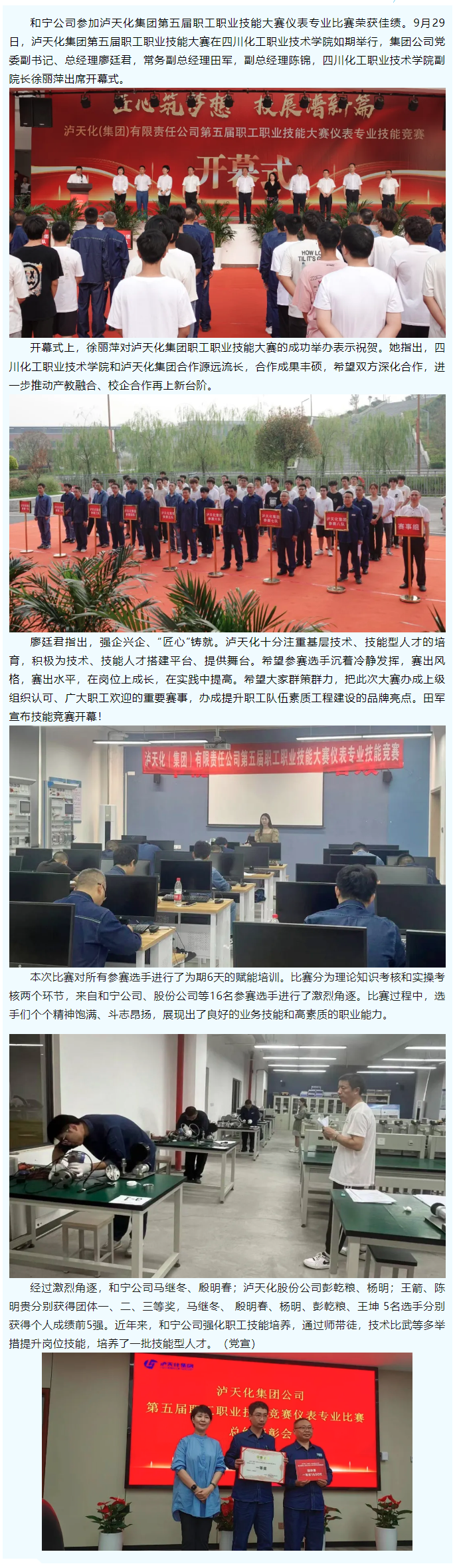 和寧公司參加瀘天化集團(tuán)第五屆職工職業(yè)技能大賽榮獲佳績(jī)