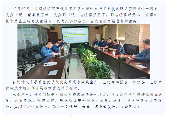 公司召開氣化高品質(zhì)水煤漿生產(chǎn)工藝技術(shù)研究項目推進會