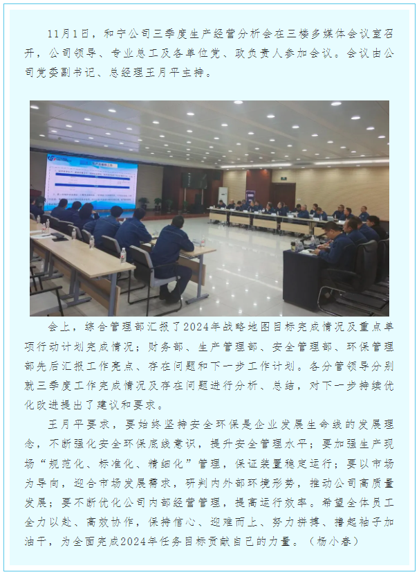 公司召開三季度生產(chǎn)經(jīng)營(yíng)分析會(huì)