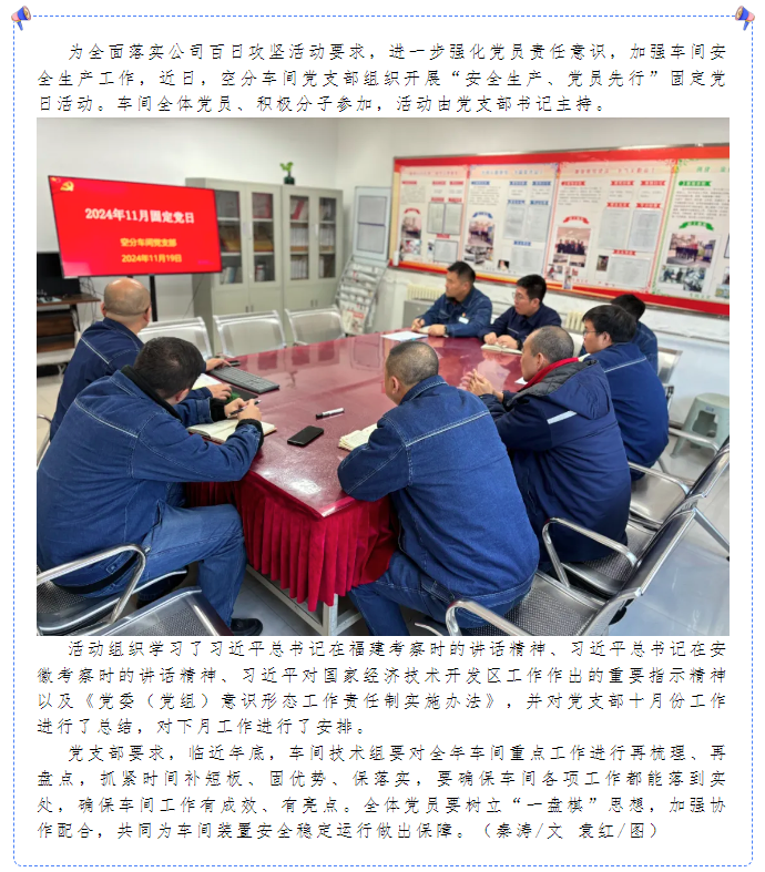 空分車間黨支部組織開展固定黨日活動