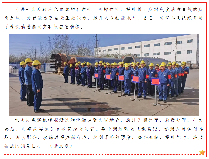 檢修車間開展清洗油泄漏火災(zāi)事故應(yīng)急演練