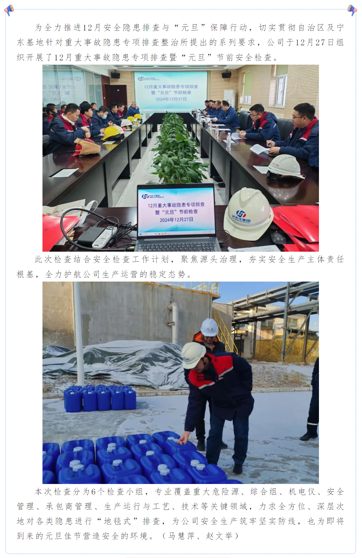 公司組織開展12月重大事故隱患排查暨“元旦”節(jié)前安全檢查