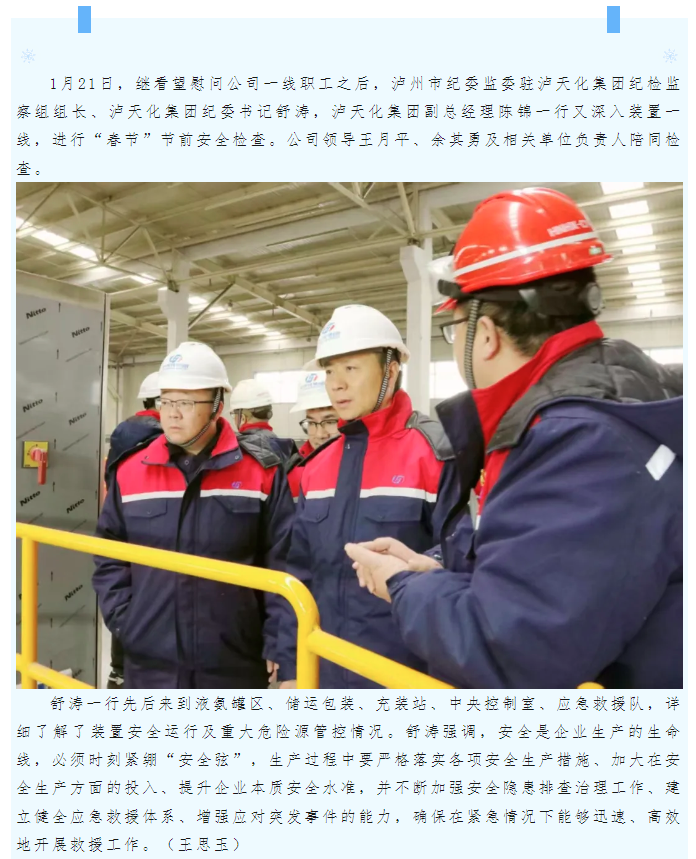 瀘天化集團(tuán)領(lǐng)導(dǎo)到公司進(jìn)行“春節(jié)”節(jié)前安全檢查