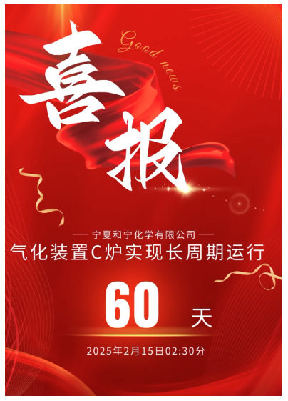 喜報(bào)!氣化裝置C爐實(shí)現(xiàn)長(zhǎng)周期運(yùn)行60天