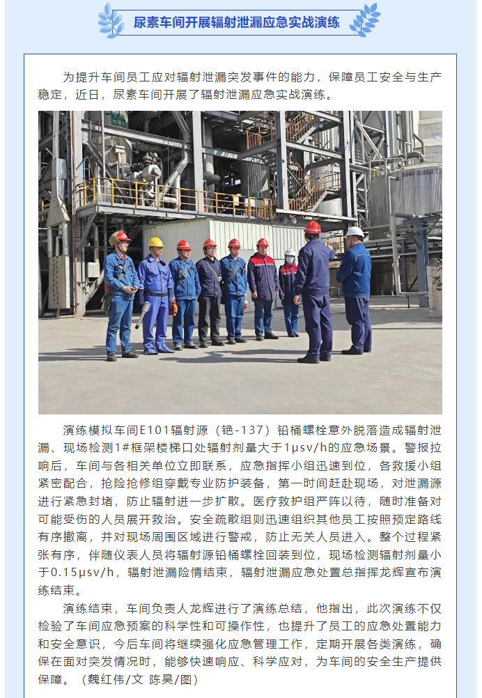 尿素車間開(kāi)展輻射泄漏應(yīng)急實(shí)戰(zhàn)演練
