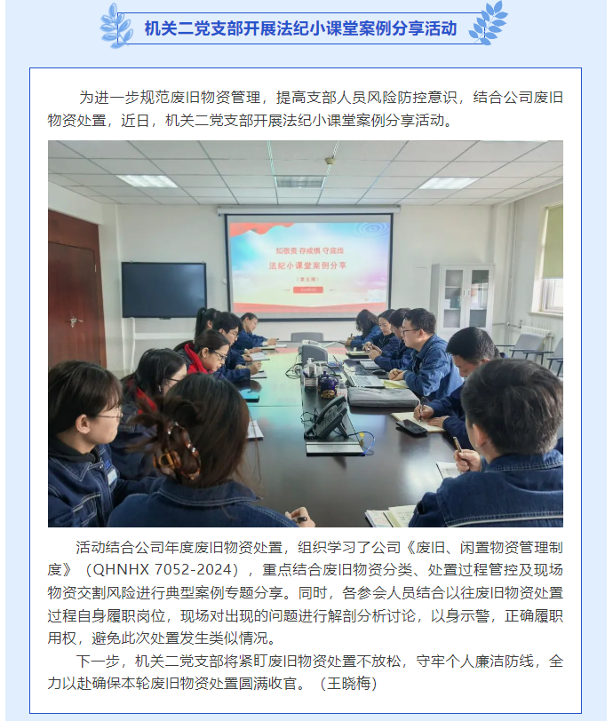 機(jī)關(guān)二黨支部開展法紀(jì)小課堂案例分享活動