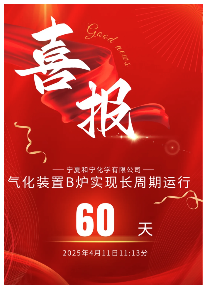 喜報!氣化裝置B爐實現(xiàn)長周期運行60天