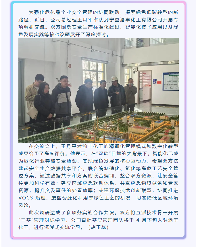 深化區(qū)域協(xié)作 共筑安全防線——和寧公司與渝豐化工開展?;袠I(yè)安全管理創(chuàng)新交流